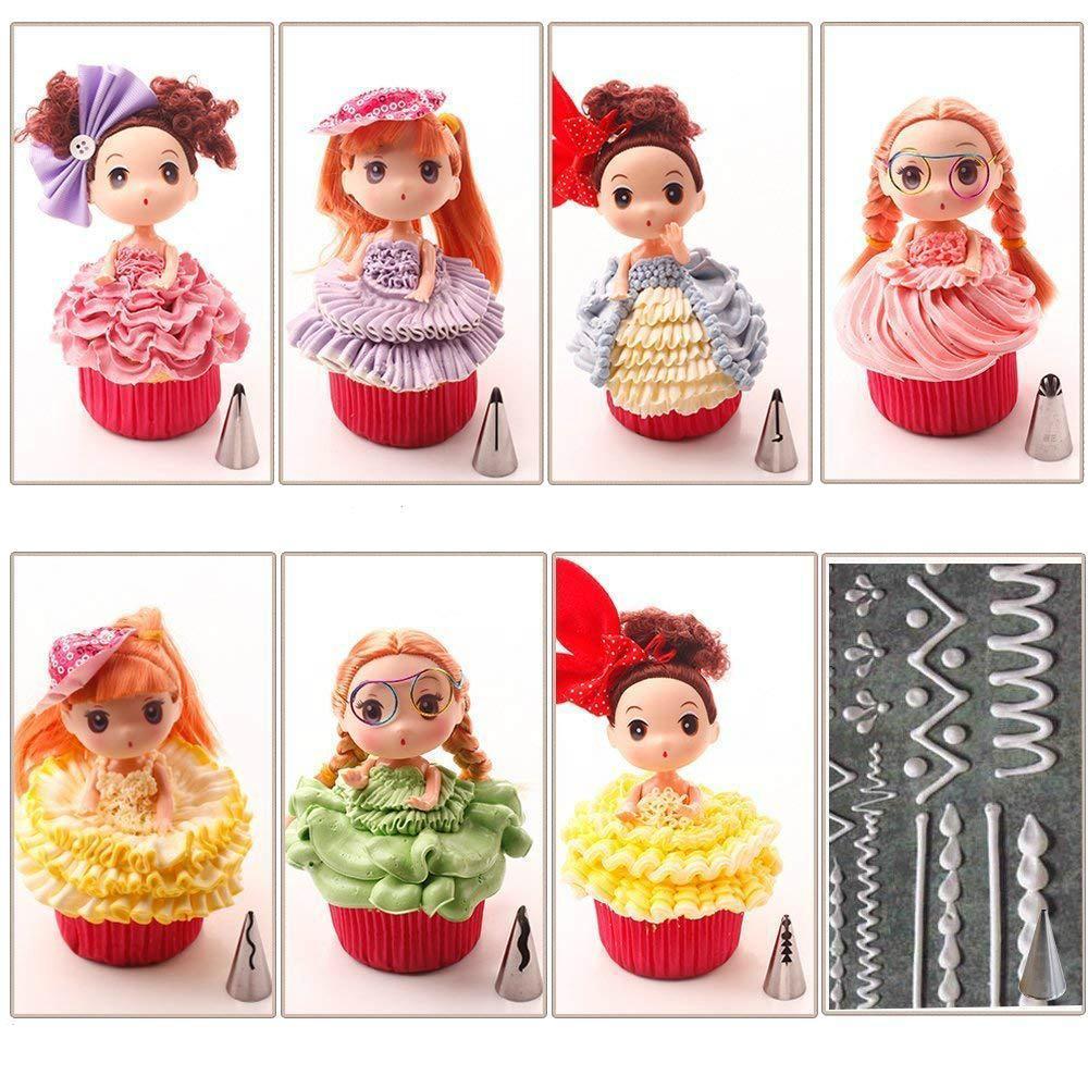 Simply hold straight and drag, these tips help you make creamy princess dress, roses, rosebuds, daisies, pansies and apple blossoms! Takes only 1 step to make a beautiful whip cream or buttercream frostings. Workable with standard/ large coupler and piping bags.