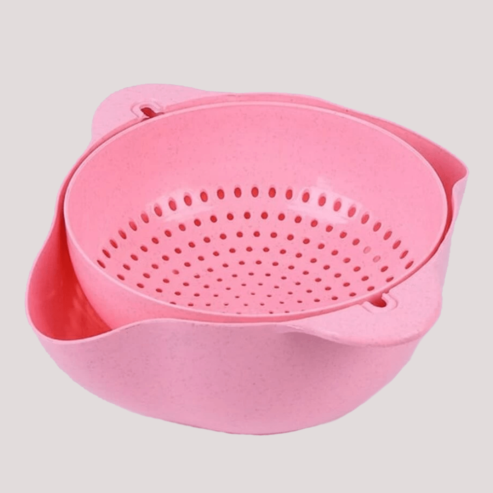 • prevents food from falling out the double 360 ​​° rotating basket prevents fruits and vegetables from falling out of the strainer