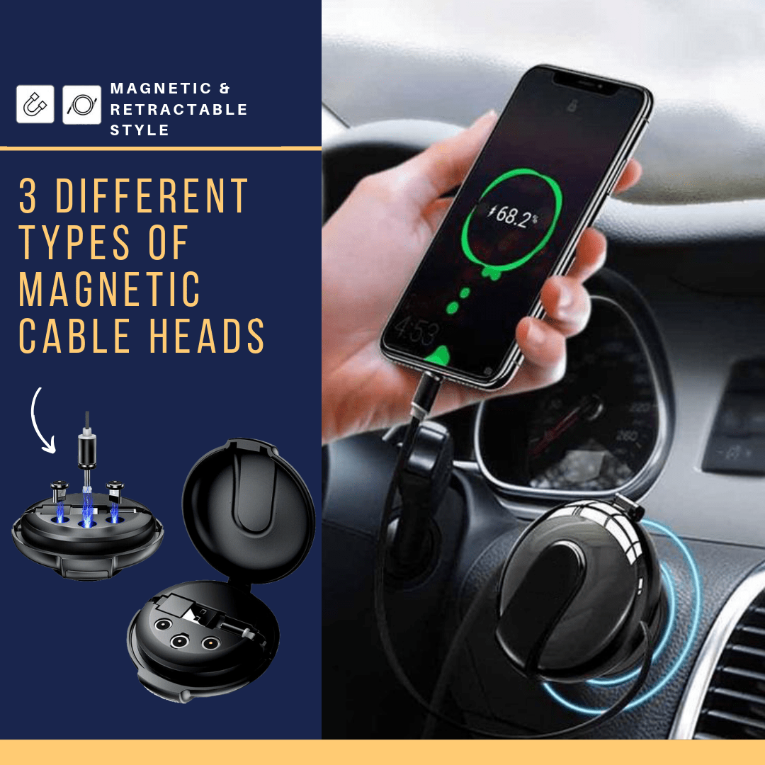 It is really small and easy to use with a great humanized design. You can drive your car without any worry! Just stick the magnetic patch on the car, then attach the data cable box to it. If you need different devices to charge you can simply switch the magnetic cable head. This charger's magnetic and retractable style provides you to hide all components within the pocket-sized case and it's easy to pull out the required cable for charging.
