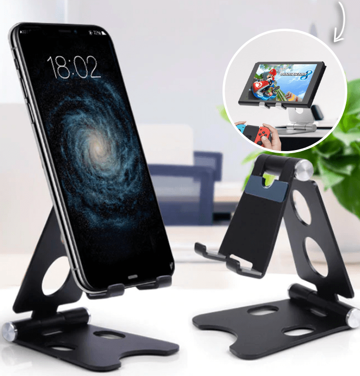 This Easy Hold - Foldable Phone Holder can hold your phone or tablet horizontally or vertically and meet your demands of multiple viewing angles when using the tablet. Adjust to your desired angle with your hand up to 270 degrees