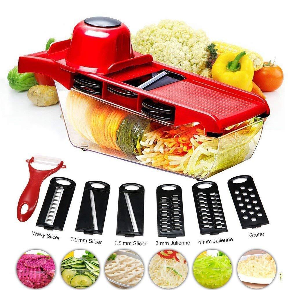 Prepping a simple salad will no longer be a chore. No more boring knife work! You may prep your favorite vegetables and fruits within minutes now. Chips, French Fries, salads, juliennes, onion circles, veggie noodles will be cooked with no efforts. It's a top-rack dishwasher to make cleaning a breeze. The All in One Vegetable Cutter is the ideal tool for your home and professional kitchen!